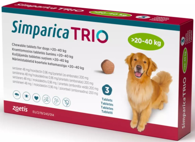 Simparica Trio Cão 20-40kg x3 Comprimidos Mastigáveis